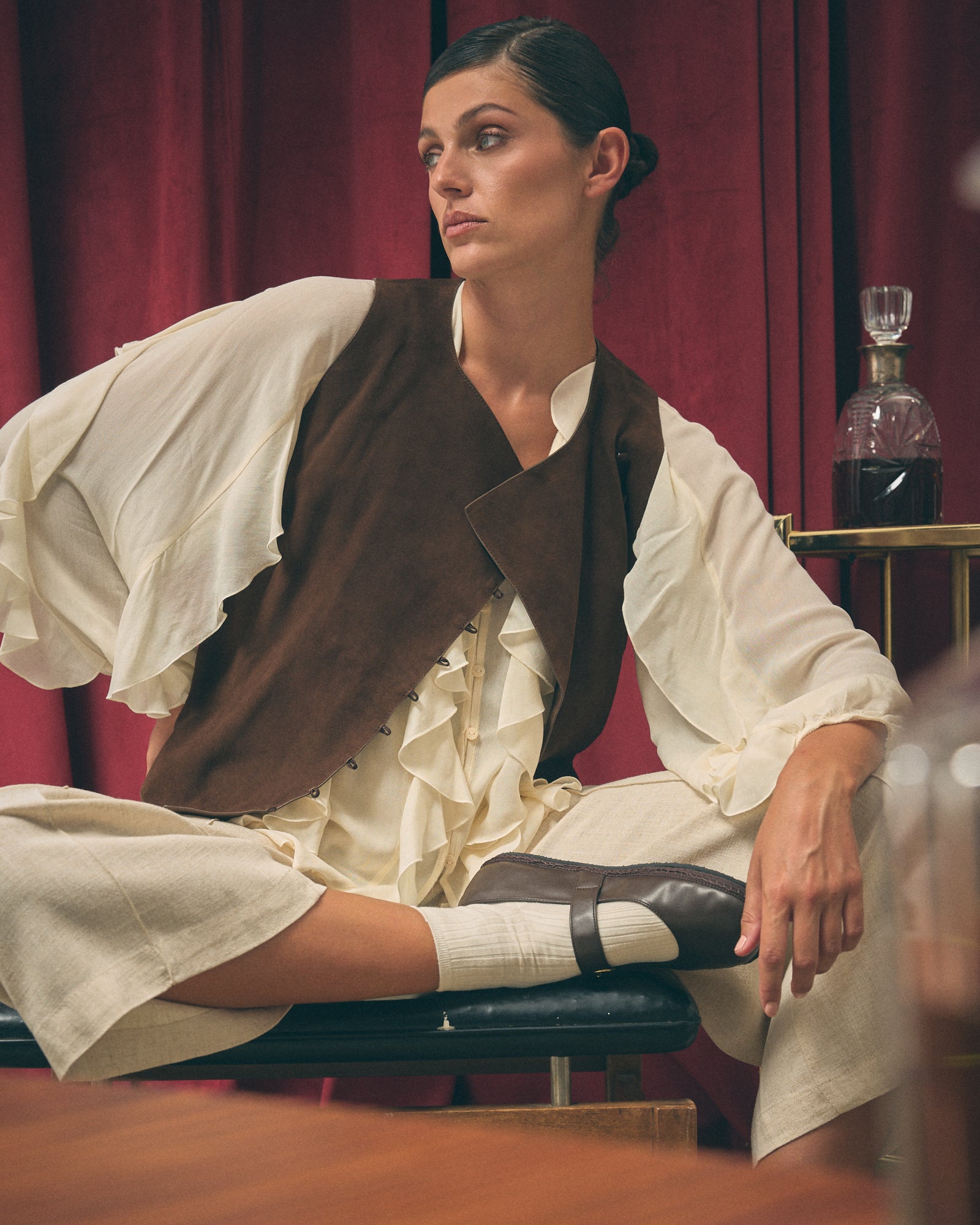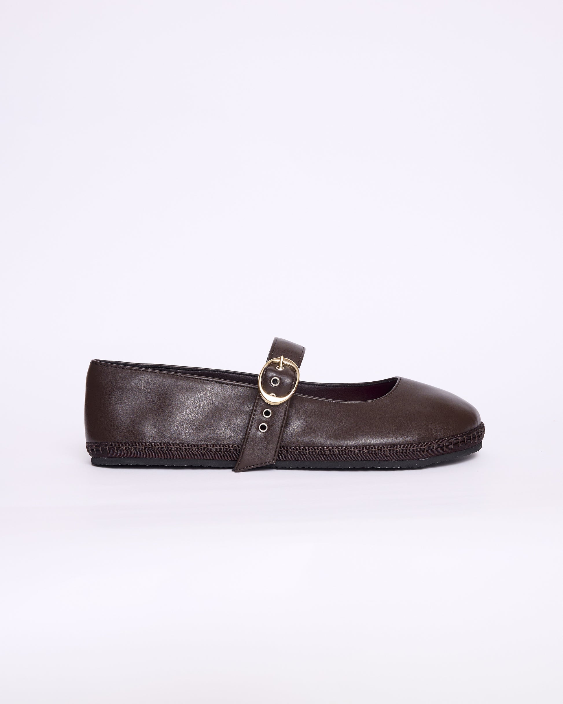 La Mary Belt Caffé representa la elegancia tranquila y esencial. Confeccionada en piel vegana de color marrón chocolate, sin ornamentos, esta mercedita barefoot ofrece una estética limpia y sobria que combina con cualquier look consciente.